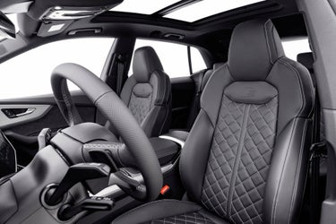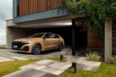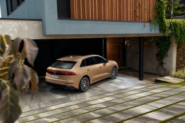 O novo Audi Q8 exibe seu DNA off-road com arquitetura quattro clássica e uma poderosa linha Coupè. Detalhes como o impressionante Audi Singleframe, os anéis Audi em aparência 2D e o pacote S line contribuem para tornar sua robustez e força ainda mais evidente.