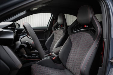 Com os bancos dianteiros superesportivos RS, fazer as curvas se tornam um prazer. Os apoios laterais elevados do assento fornecem excelente suporte lateral e os apoios de cabeça integrados fornecem conforto adicional. O visual esportivo é completado pelas costuras em favo de mel no centro do assento.